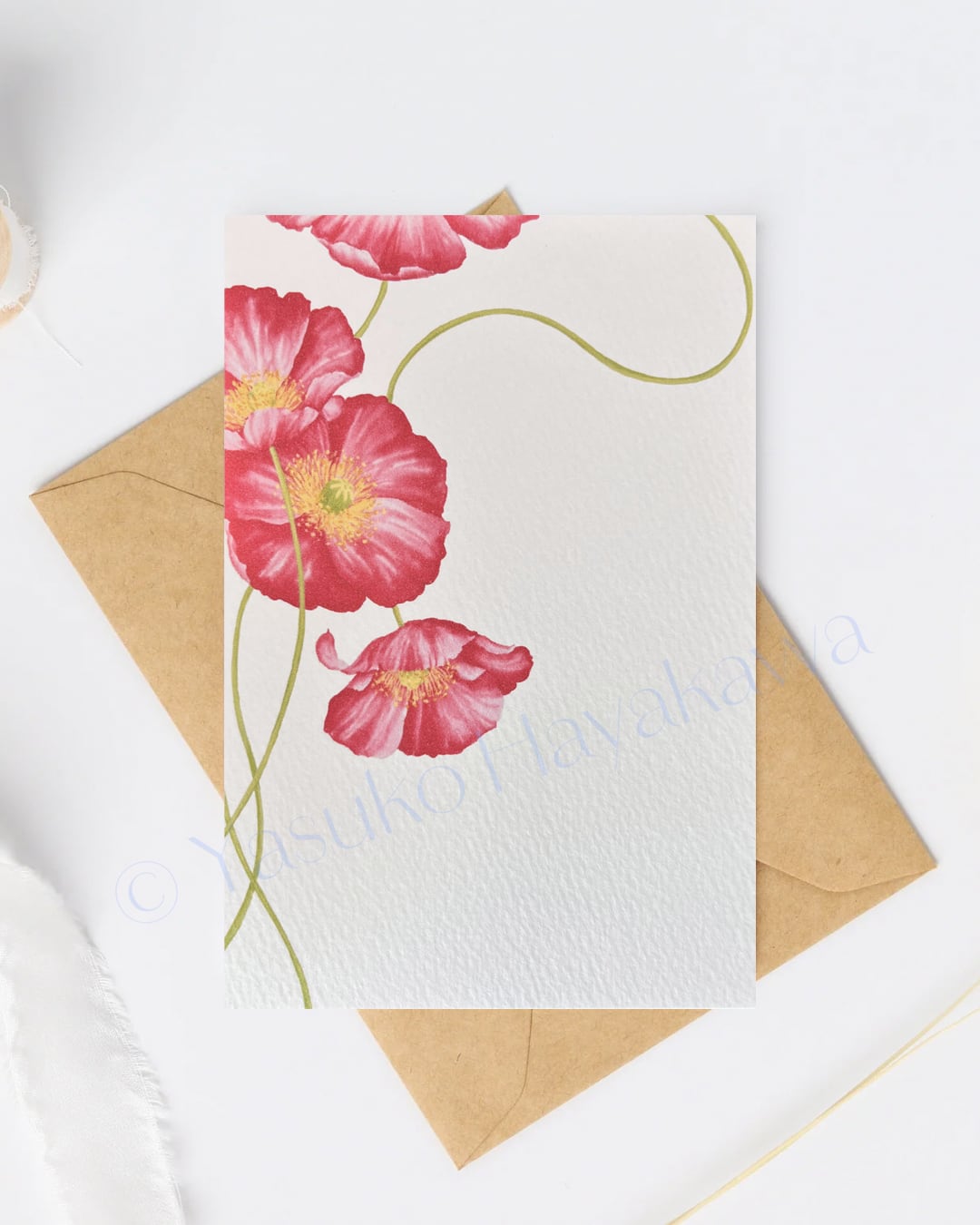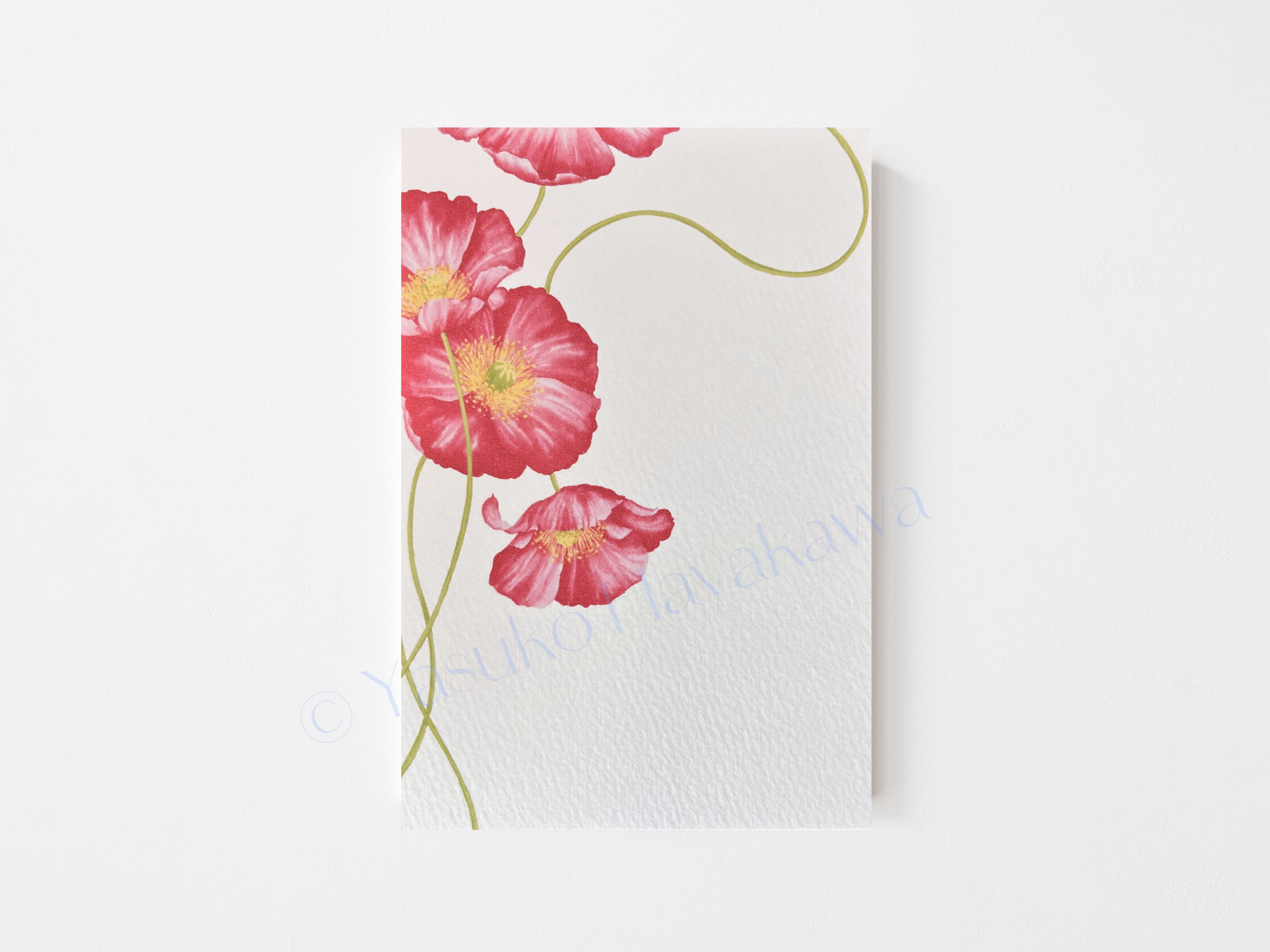 水彩で描いた季節の花のポストカードの「3枚セット」です