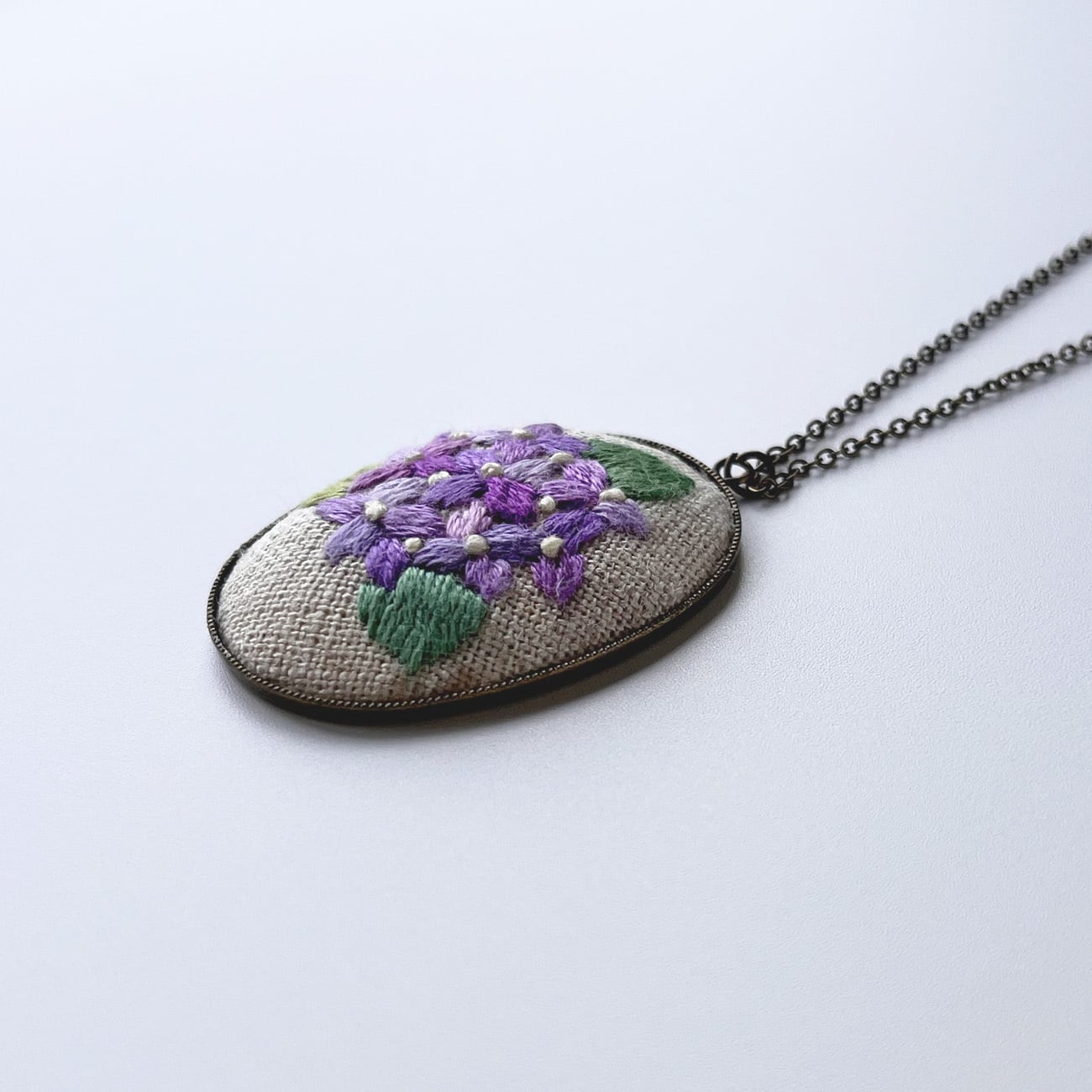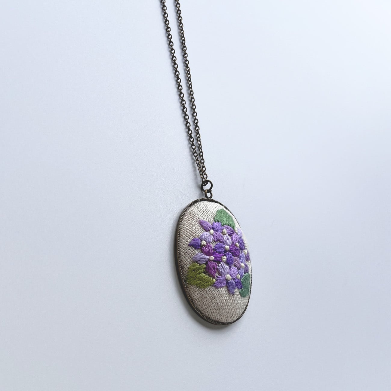 アンティークゴールドの台座に中綿を詰めて刺繍布で包みました。